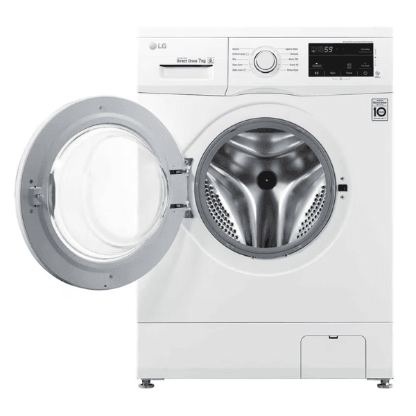 غسالة اتوماتيك ال جي 7 كيلو تحميل أمامي تنشيف 75% , تقنية ™SmartThinQ أبيض – WF0710WHN