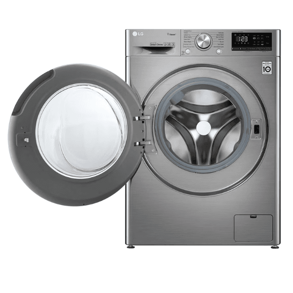 غسالة اتوماتيك ال جي تحميل أمامي 9 كجم تنشيف 75% محرك DD ذو 6 حركات فضي – WFV0914XM