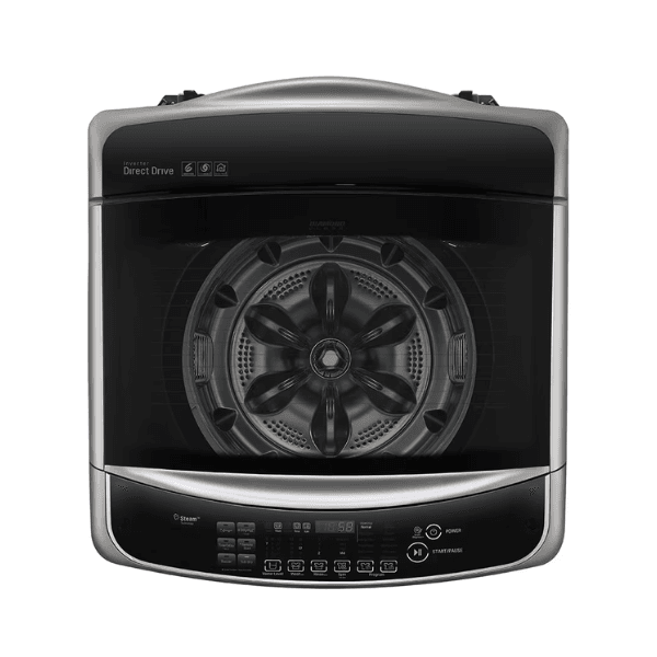 غسالة ال جي ١٩ كيلو اوتوماتيك تحميل علوي تنظيف استثنائي Wi-Fi فضي استيل – WTS19HHMK1