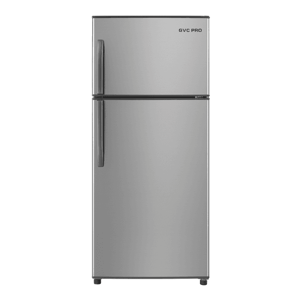 • ثلاجة GVC PRO بابين بتصميم أنيق باللون السلفر.